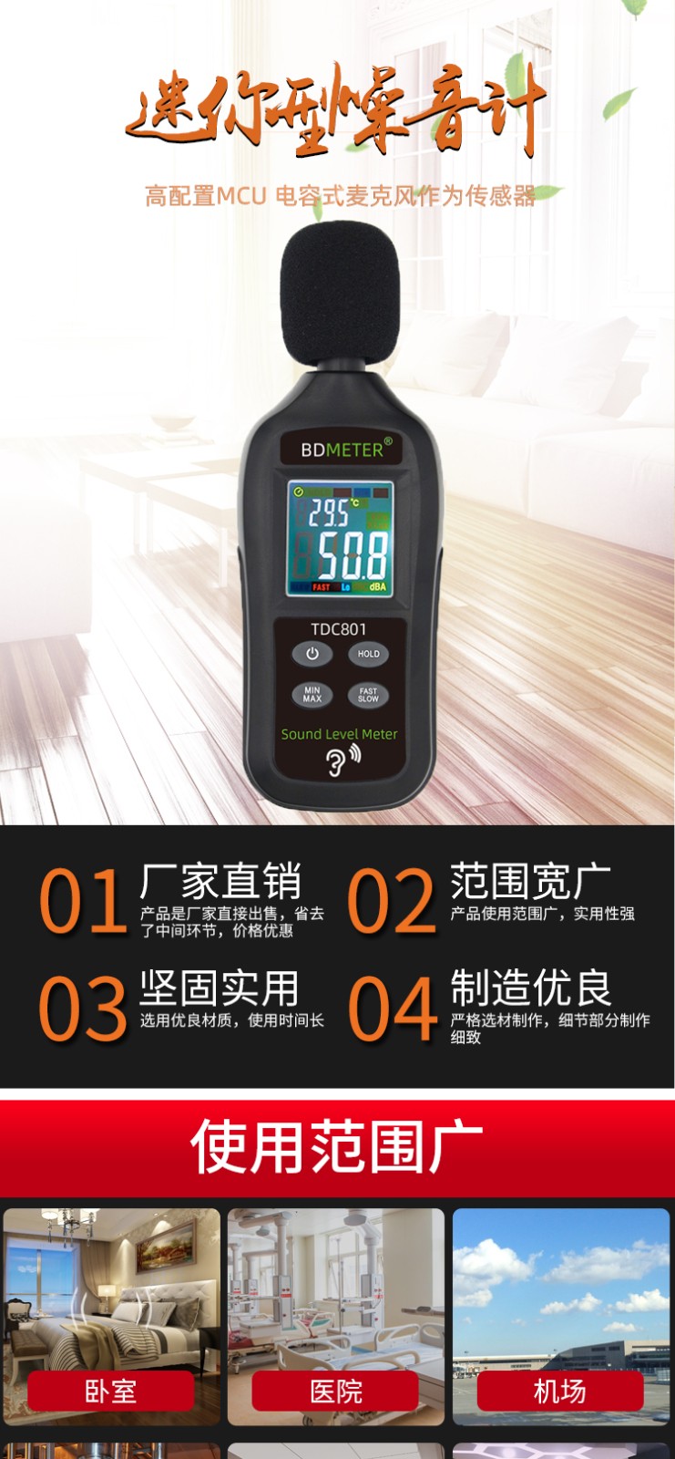 TDC801精度数显分贝仪噪音计便携式噪声检测仪 声级计