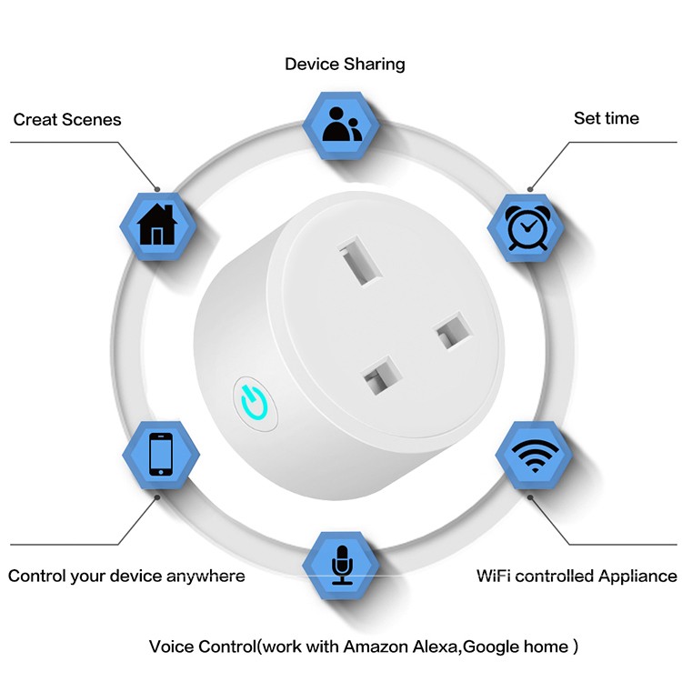 The smart wifi plug socket is perfect compatible with Amazon Alexa, Google Home. Just simply give a voice command to your Alexa or Google Home Assistant to control your devices when you are on go.